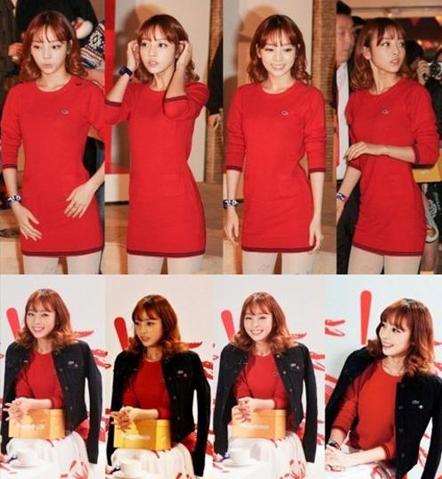 특히 구하라는 헤어컬러와 맞춘 듯 레드컬러의 미니 원피스를 입은채 군살없는 완벽한 몸매라인을 과시하고 있어 시선을 끌고 있다.