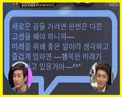 이수만은 "새로운 길을 가려면 한 번은 다른 고생을 해야 하니까. 미래를 위해 좋은 일이라 생각하고 즐겁게 임하면 행복한 미래가 기다리고 있을거야"라는 문자를 보내 감동을 주었다.