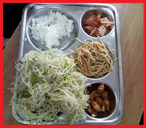 공개된 사진은 밥과 반찬 등이 담긴 급식판인데 밥의 양은 적고 반찬만은 가득하다.