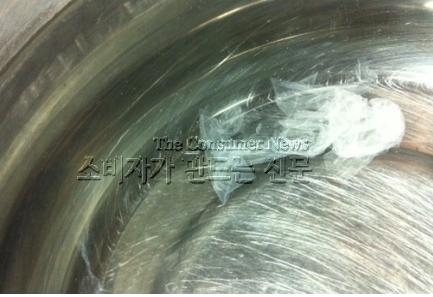 사진상에는 큰 덩어리만 보이지만 육안으로 보면 작은 덩어리가 잔뜩 둥둥 떠다닙니다. 이젠 사용기간의 임대료 뿐만 아니라 허위광고과 허위사용서를 제작해 사용자들을 우롱한 것까지 보상을 받아야겠습니다.(제보자=장한이)