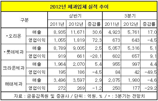 이에 비해 상반기에 수익성 악화로 고전했던 롯데제과는 상대적으로 선방했다.
