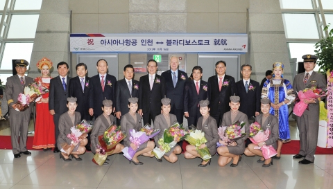 아시아나는 이날 인천국제공항 3층 출국장에서 윤영두 사장을 비롯해 콘스탄틴 브누코프(H.E. Konstantin Vnukov) 주한 러시아대사, 이윤석 민주통합당 국회의원, 이이재 새누리당 국회의원, 손명수 서울지방항공청장 등이 참석한 가운데 인천~블라디보스토크 노선 취항식을 가졌다.