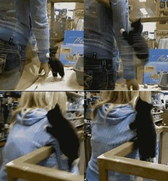 이어 고양이가 여성의 팔을 타고 올라가자 마치 '나 안데려가냥'이라고 말하는 것 같아 웃음을 자아낸다.
