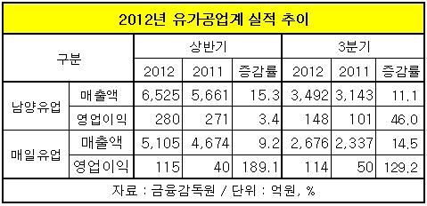 유가공업계의 라이벌인 남양유업과 매일유업이 3분기 외형과 수익면에서 높은 성장율을 기록하며 실적개선에 성공했다.