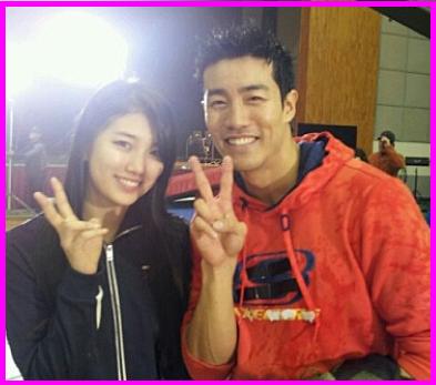 공개된 사진 속 수지는 최성조 감독과 함께 브이자 표시를 하며 다정한 포즈로 카메라를 응시하고 있다.