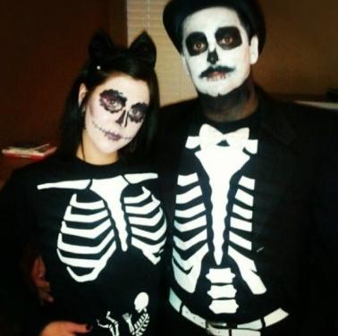 또 다른 임신 알리는 창의적 방법으로 뱃속의 아기를 해골로 그려놓은 모습을 그려 넣기도 했다.