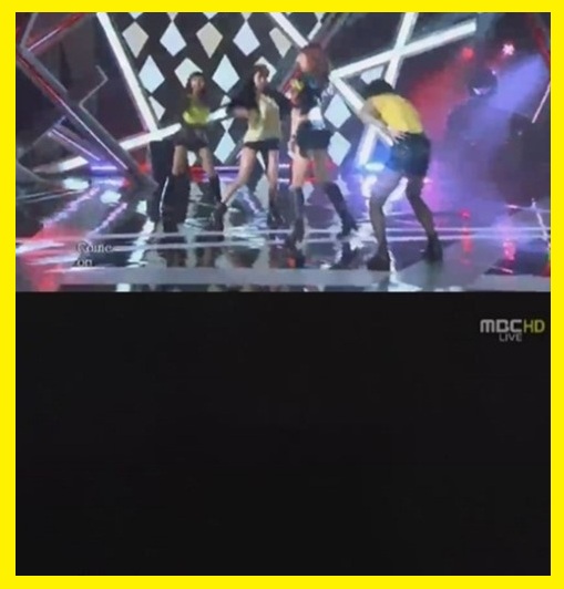 이날 방송에서 '룩 앳 미(Look at me)' 무대를 선보이던 쥬얼리를 비추던 '음악중심' 카메라에 가사와 MBC 로고를 제외한 완전한 암흑이 된 것이다.