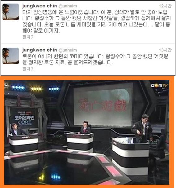 진 교수의 퇴장에 '사망유희' 2차 토론은 급하게 마무리됐다. (사진-진중권 트위터, 곰TV)