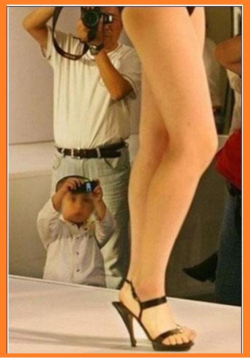 사진에는 무대 위 패션모델의 각선미에 눈을 떼지 못하고 사진을 찍는 남자와 남자아이의 모습을 담고 있다.