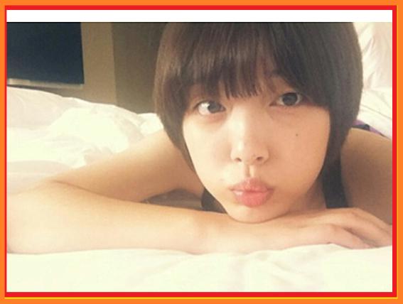 사진에는 설리가 침대에 엎드려 귀여운 표정을 짓고 있다.