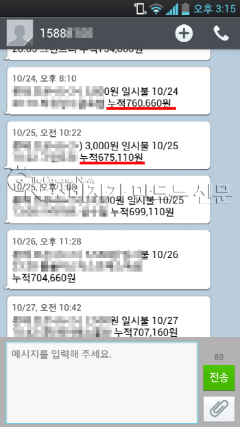 잠시 후 카드사로부터 ‘누적67만5천110원’이라는 문자메시지를 받았다.