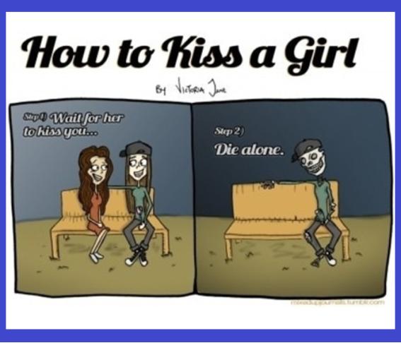 게시물에는 한 커플이 벤치에 앉아있다. 그림에서 여성은 남자의 키스를 기다리지만 남자는 키스를 머뭇거리다 여자가 떠난다. 남자는 이후 죽을 때까지 솔로로 남게 된다.