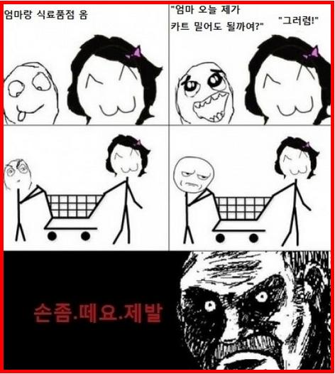 최근 각종 온라인 커뮤니티 게시판에는 '엄마랑 마트 갈 때 공감'이라는 제목으로 다섯 컷짜리 만화가 게재됐다.