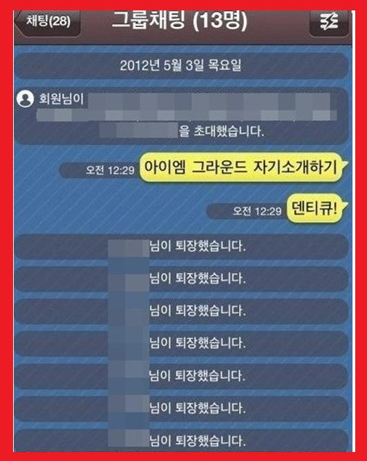 친구가 '아이엠 그라운드 자기소개하기'라고 말하자 친구들은 하나 둘 씩 대화방을 나가기 시작한다.