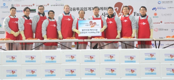 숫자만 들여다보던 증권과 자산운용사 임직원들이 앞치마를 두르고 김치 담그기에 구슬땀을 흘렸다.