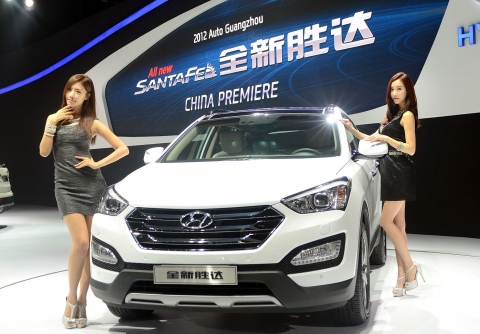 현대자동차(회장 정몽구)는 22일 중국 광저우 ‘수출입상품 교역 전시관’에서 열린 ‘2012 중국 광저우 국제 모터쇼’에 중국형 ‘신형 싼타페(현지명 추웬신성다)를 선보였다.