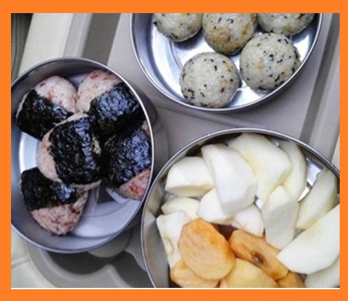 사진에는 유진이 만들어 준 주먹밥과 과일이 든 도시락 모습이 담겨있다.