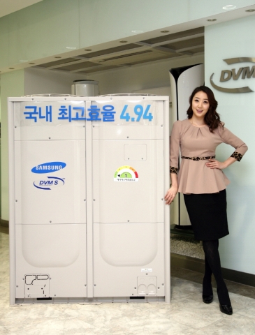 ‘한랭지형 시스템에어컨 DVM S’ 두 개의 인버터 압축기를 사용한 듀얼 스마트 인버터 방식을 채택해 국내 업계 최고 수준의 4.94로 최고 에너지 소비효율을 달성했다.