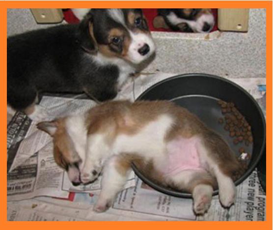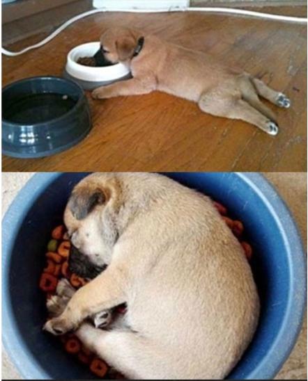 공개된 사진에는 강아지들이 밥을 먹다 지쳐 잠들어 있는 모습이다. 특히 강아지들은 자신들의 밥그릇에 얼굴을 파묻고 잠이들어 웃음을 자아냈다.
