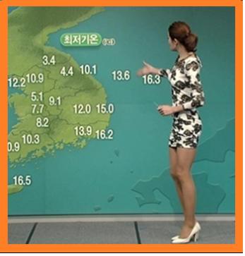 공개된 방송 모습에서 임현진 기상캐스터는 몸에 붙는 초미니 원피스를 입고 날씨 뉴스를 진행하고 있다.