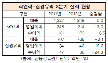 밀폐용기 시장의 라이벌인 락앤락과 삼광유리가 3분기 실적을 놓고 희비가 엇갈렸다.