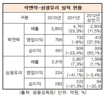 올 상반기에 두 자릿수 매출 증가와 30%를 웃도는 영업수지 개선을 기록했던 락액락은 영업이익이 다소 뒷걸음질 친 반면 삼광유리는 지난해부터 줄곧 이어지던 영업이익 하락세에서 탈출해 한숨을 돌렸다.