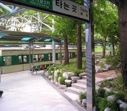 공개된 한국의 특이한 지하철 역 사진 속에는 지하철역 승강장 내 나무가 심어진 모습이 담겨있다.