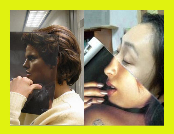 최근 온라인 커뮤니티 게시판에는 각종 잡지들로 얼굴을 가려 1초만에 성형 효과를 얻은 모습을 찍은 사진들이 화제를 얻고 있다.