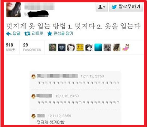 이 ‘멋지게 옷 입는 방법’을 접한 누리꾼들은 "그렇지 멋져야 옷이 멋지지", "예뻐야 옷이 예쁘고", "패션의 완성은 얼굴", "너무 당연한 것", "이건 뭐 방법이 없네"등의 반응을 보였다. (사진-온라인 커뮤니티)