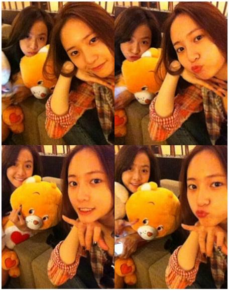 크리스탈 민낯사진 속 크리스탈은 같은 에프엑스 멤버 빅토리아와 함께 다양한 표정을 선보이며 화장을 하지 않았음에도 깨끗한 피부를 과시하고 있다.