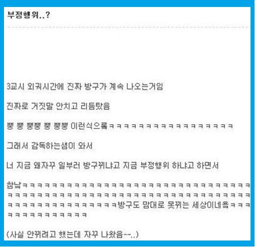 게시물에 따르면 한 학생이 3교시 외국어 시간에 방귀가 계속 나와 참다가 방귀가 리듬을 타며 나왔다.