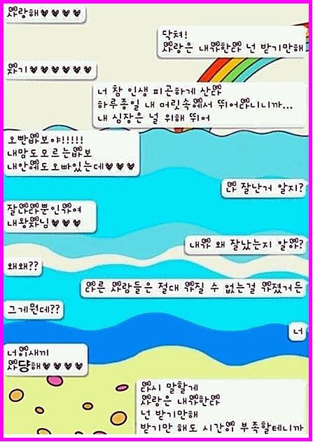 대화내용을 살펴보면 '사랑해'는 기본이고, 사랑한다는 여자의 메시지에 '닥쳐, 사랑은 내가 한다. 넌 받기만 해', '잘나다 뿐인가요, 내 왕자님' 등 연인이 아니라면 절대 받아줄 수 없는 멘트로 이뤄져 있어 보는 이들의 헛웃음을 자아낸다.