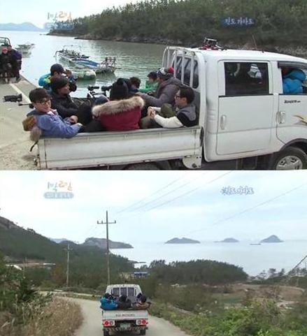 이날 '1박2일' 방송에서 윤상, 김승우, 유희열이 트럭 실내에 탑승을 했고, 나머지 7인은 트럭 적재함에 탄 채 이동했다.
