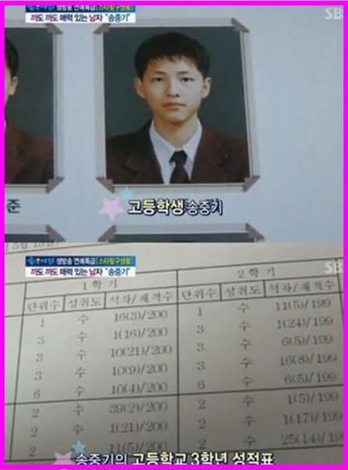 배우 송중기의 고3 성적표가 공개돼 화제다.