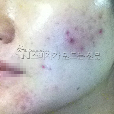 그러나 사용후 3일째부터 불긋한 뾰루지가 올라오기 시작하더니 점점 증상이 심해져 트러블이 발생한 자리에 색소침착이 일어나는 등 시간이 흐를수록 피부상태가 심각해졌다.