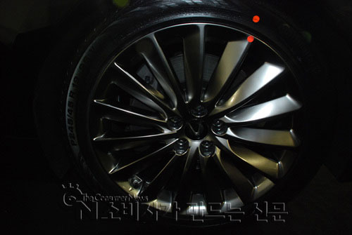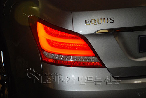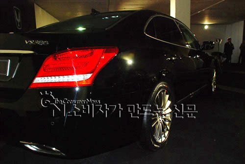 28일 현대자동차가 서울 청담동에 위치한 라움에서 공개한 에쿠스 페이스리프트. 정제미와 세련미를 강조한 디자인 콘셉트에 맞춰 측면부는 새롭게 디자인된 3종 휠(18인치, 19인치, 리무진 전용 19인치)이 적용돼 역동성이 강조됐다.