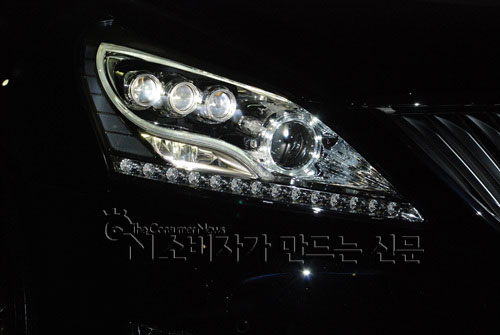 URL복사 기사공유하기 스크랩 프린트 메일보내기 글씨키우기 리더의 위상에 걸맞는 정제된 품격과 세련미를 강조하기 위해 적용된 에쿠스 페이스리프트의 LED 포그램프. 신형 에쿠스는 지난 2009년 3월 출시 후 4년여 만인 28일 서울 청담동에 위치한 라움에서 공개됐다.전국 영업점에서 이날부터 사전 계약에 돌입했으며 본격 판매는 가격이 공개되는 다음 달 초부터 이뤄질 예정이다.[마이경제/소비자가 만드는 신문=유성용 기자] 저작권자 © 소비자가 만드는 신문 무단전재 및 재배포 금지 유성용 기자 다른기사 보기 URL복사 기사공유하기 주요기사 교촌에프앤비, 34년 소스 노하우 듬뿍 담은 ‘소싯’ 매장 공개...디지털·자동화 시험의 장 철새·먹튀 설계사 사라질까? 금융당국, 설계사 위촉실태 점검 롯데그룹, 12월 1일부터 ‘예측 가능한 수시채용’ 시작 신축 아파트 천장 물 줄줄 새는데…‘누수냐 vs. 결로냐’ 쿠팡, 3370만 건 고객 개인정보 유출..."금융 정보는 안전" 현대건설, 도시정비 ‘10조 클럽’ 역사 썼다…7년 연속 1위 굳혀