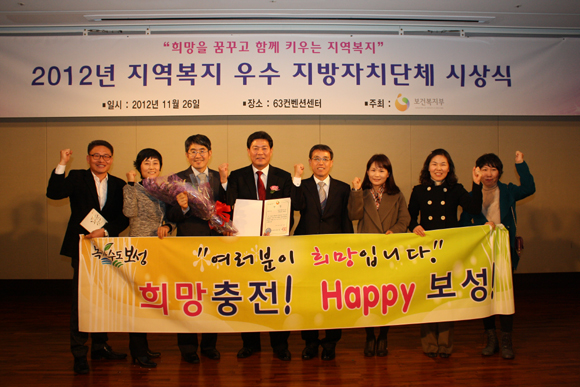 보성군은 지난 26일 서울 63빌딩 컨벤션센터에서 보건복지부 주관으로 열린 복지정책 평가 시상식에서 복지사업 종합평가 우수상, 희망복지지원단 운영성과 분야 최우수상을 받았다.