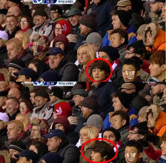 28일(한국시간) SBS ESPN ‘2012-13 잉글리시 프리미어리그 13라운드 퀸즈파크레인저스(QPR)와 선덜랜드’ 경기 중계방송 중 민호가 관중석에서 포착됐다.
