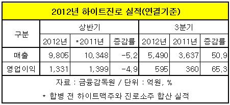 정확한 수치는 아니지만 하이트진로의 3분기 실적이 지난해 같은 기간에 비해 폭발적으로 증가한 것은 아닌게 확실하다.