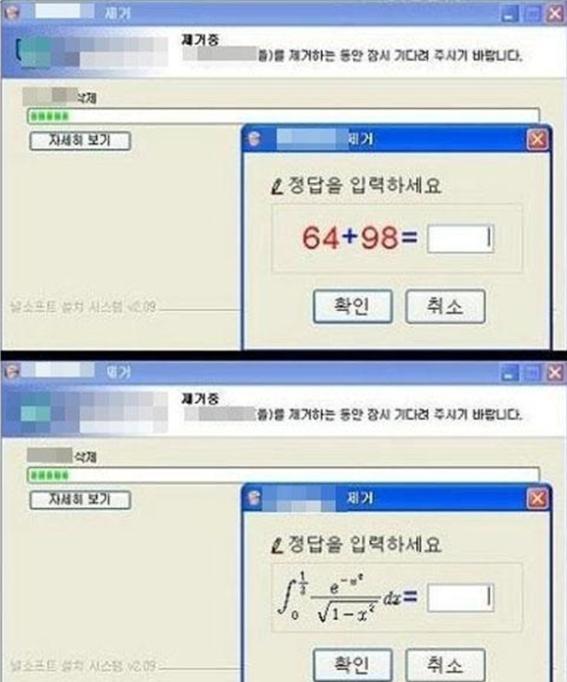 이어 다른 사진에는 복잡한 미적분 문제를 풀어야 프로그램을 지울 수 있어 황당하게 만든다.