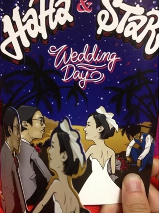 이켠이 공개한 하하 별 청첩장에는 하하와 별의 캐릭터가 두 사람을 꼭 닮아있어 눈길을 끈다.
