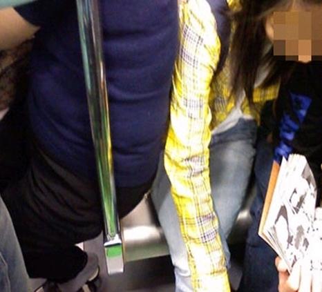 공개된 사진은 지하철 좌석에 앉아있는 사람들을 찍은 것으로 무리하게 자리를 차지하고 있는 사람의 모습이 담겨 있다.