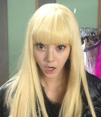 사진 속 손담비는 신곡 '눈물이 주르륵' 뮤직비디오에서 선보였던 금발 가발을 쓰고 있다.