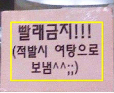 문구 내용은 “빨래 금지. 걸리면 여탕에 보냅니다”라고 적혀 있어 보는 이들의 폭소를 자아냈다.