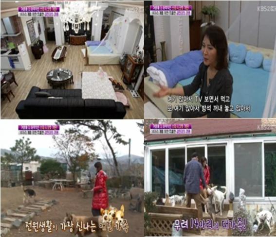 김민정의 집은 야외 테라스를 개조해 만든 실내 정원과 14마리의 애견들이 눈길을 끈다.