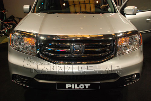 혼다코리아가 30일 오전 서울 홍은동 그랜드 힐튼 호텔에서 출시한 대형 SUV 파일럿은 각진 모양의 4각 리어 램프가 강인한 느낌을 연출하는 게 특징이다. 하단에는 듀얼 머플러가 적용돼 스포티함을 더했다. 전면부는 대형 그릴과 다이내믹한 인상의 헤드램프로 남성다움을 강조한다.
