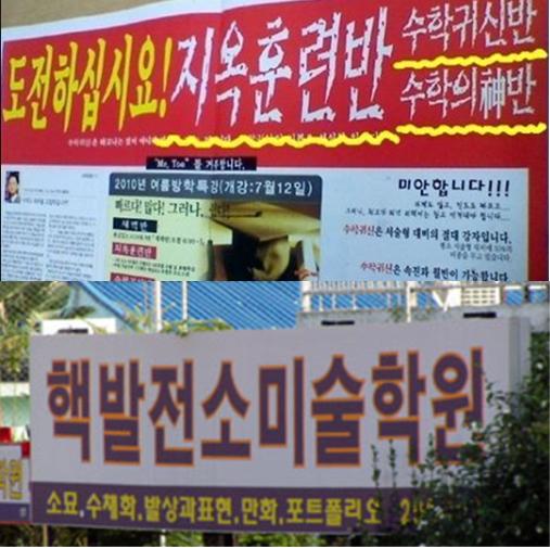 ‘무시무시한 학원’ 2탄에는 한 학원의 수강생 모집공고 내용에 ‘도전하십시요! 지옥훈련반’, ‘수학귀신 반’, ‘수학의神(신) 반’ 등의 무서운 문구가 눈길을 끈다.