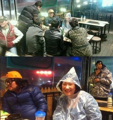특히 하하의 어머니 김옥정씨는 외투 바깥에 우의를 걸치는 독특한 패션을 선보여서 큰 웃음을 주었다.