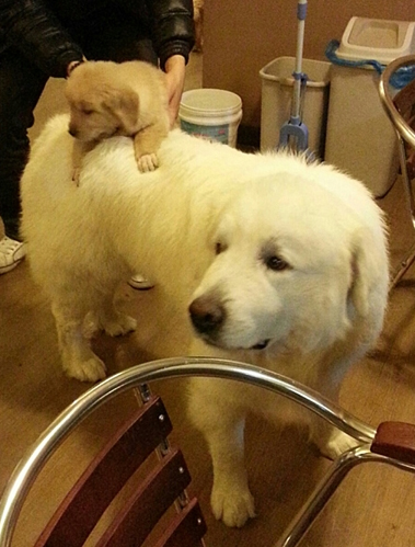 공개된 사진에는 과거 KBS2 ‘일요일이 좋다-1박2일’에서 마스코트로 활약한 ‘원조 국민애견’ 상근이가 담겨있다. 사진 속 상근이는 장동민의 애완견을 등에 업고 건강한 모습을 보이고 있다.